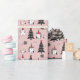 Engraçado ilustração natalícia de gatos em Santa Hats, com pequenos camundongos, peixes e fios em torno das árvores de Natal. Padrão de impressão em todo o lado em fundo rosa.