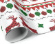 Uma design de Suéter de Natal Vermelhos e Verdes, sem costura, com renas de galinha, Papais noeis que voam com o trenó em torno das árvores de Natal, flocos de neve e a frase "Feliz Natal". Esta design certamente vai dar uma alegria de Natal!