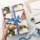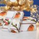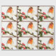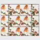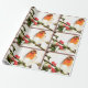Um belo papel de embrulho projetado tem um pássaro torácico laranja sentado com bagas ocas. Esta design fará seu presente dar especial.