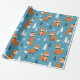 Enrole seus presentes de Natal com este papel de embrulho de Natal com uma raposa fofa fofa com chapéu, flocos de neve e abetos em fundo azul. Seus presentes ficarão muito alegres debaixo da árvore de Natal.