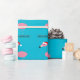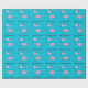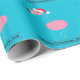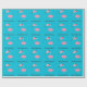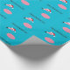 Um flamingo cor-de-rosa vestindo um chapéu de santa neste papel de embrulho que você pode personalizar e personalizar, fique acima das palavras Feliz Natal entre as linhas vermelhas e verdes contra um fundo azul. O texto pode ser personalizado para ajustado das suas necessidades.
