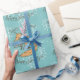 Aconchegante decorativo design de raposa de Natal feliz em fundo azul.