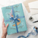 Aconchegante decorativo design de raposa de Natal feliz em fundo azul.