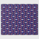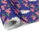 Um rolo de papel de embrulho para o Natal, com um padrão de Santas, Holly e Ho, Ho, num fundo azul escuro que você pode facilmente mudar, usando o botão Editar. O design é de uma colagem de papel pintada à mão por Judy Adamson.