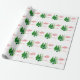 Este papel personalizado de empacotamento de Cartões de natal tem um conjunto de três árvores de Natal simuladas em folha verde com arestas douradas sobre elas e texto decorativo vermelho que diz "Feliz Natal", junto com texto personalizável vermelho que diz "Da Família Henderson" sobre ele. Altere o texto para seu nome ou coloque o que quiser nele, ou exclua-o se você não quiser texto.