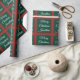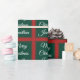 Mínimo elegante papel de embrulho de Feliz Natal com o nome de seus destinatários de presentes. Vermelho e verde clássico com letras brancas de script.