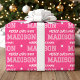 Prepare-se para o Natal com papel de embrulhamento de nome personalizado! Este padrão em grande escala apresenta tipografia inspirada em camisa esportiva, com uma fonte de blocos retrorreflectores, script de tendências e um motivo de estrela. Personalize o modelo com o nome do destinatário e um cartões de natal, ou adapte-o para qualquer ocasião especial. Esta design festiva é adequada para todas as idades, desde crianças e adolescentes até família e amigos. Um pacote de presentes de padrão uniforme, disponível com um acabamento mate ou brilhante. Cores impressas: rosa e branco.