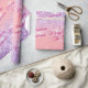 Personalize nomes e Feliz Natal, ou mensagem, em texto de guião fuchsia sobre fundo de pêssego com flocos de neve e brilho; perfeito para embrulhar esse dom especial. Clique em "Editar Design" para alterar cores e digitar estilos.
