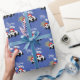 Um estilo tão adorável de Natal, com ursos Panda bonitos em Chapéus Santa, flocos de neve ouros e Mensagem de Natal Feliz em Padrão Festivo Azul, ideal para o invólucro de presente de Natal ou para as marcas de artesanato festivas.