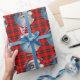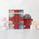 Papais noeis de Natal Feliz Xadrez Vermelha Festiva Tartan Inverno Feriado de inverno Molho de Papel para Presente Apresenta Papai Noel com borrachas de neve com o texto "Feliz Natal" com seu nome personalizado abaixo em um fundo tartano vermelho. Perfeito para o presente de Natal embrulhando para a família e amigos. Concebido por © Evco Holidays www.zazzle.com/store/evcoholidays