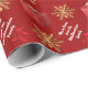 O design personalizado festivo do papel de envolvimento do feriado do Natal com os flocos de neve do inverno do ouro e o arco vermelho do Xmas do brilho atual e o vermelho da fita em um fundo customizável verde liso, personalizam este design adicionando seu nome de família ou texto do Xmas que cumprimentam e que adicionam sua foto de família favorita. NOTE POR FAVOR o ouro não é metálico.