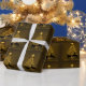 Esta design de papel de embrulho de Natal Merry encantadora apresenta um casal de cervo de silhueta em frente a um ouro brilhando na árvore de Natal. ~