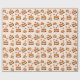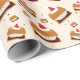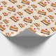 O papel de embrulho de Natal com um padrão divertido de sorrir de "mores" vestindo chapéus de Papai Noel.