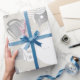 Holidays Modern Wrap - decorado com textura metálica em pó com um boneco de neve de ouro branco e uma caneca de chá de café floreceK