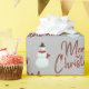 Texto de Feliz Natal Vermelho e boneco de neve nas cinzas com flocos de neve. A cor de fundo pode ser alterada.