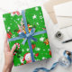 Enrole seus presentes de Natal com este papel de embrulho de Natal com estrelas, boneco de neve, sinos de Natal, cana doce e presente de Natal em fundo verde. Seus presentes ficarão muito alegres debaixo da árvore de Natal.