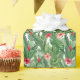 Folhas verdes vibrantes e flores vermelhas de hibisco e gengibre decoram este papel de embrulho para um tema de presente de Natal tropical e botânico para os feriados.