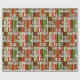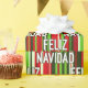 Design de padrão temático de Natal moderno e na moda que mistura um fundo de listras desigual nas cores clássicas de feriado com "Feliz Natal" em espanhol. Design de embrulhamento exclusivo para presentes originais.