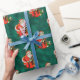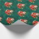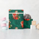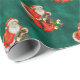 Um rapaz alegre, é o Pai Natal! Aqui temos o homem vestido com seu terno de Papai noel vermelho, mergulhando em seu saco de guloseimas para um presente para você! Um padrão muito festivo de dezenas de Santas, colocado sobre um fundo verde.