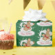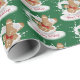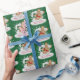 Pão de Natal mergulhando no leite em um fundo verde com texto Feliz Feriados. A cor de fundo pode ser alterada.