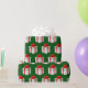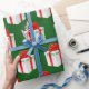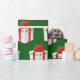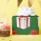 Caixa branca de presentes com arco vermelho e texto Feliz de Natal sobre fundo verde. A cor de fundo pode ser alterada.