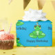 Sapo verde e branco com plástico de presente de aniversário.