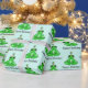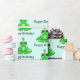 Sapo verde e branco com plástico de presente de aniversário.