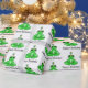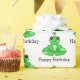 Sapo verde e branco com plástico de presente de aniversário.