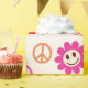 Este é um sorridente padrão de flores retrógradas coloridas com sinais de paz em laranja, roxo, rosa, amarelo e vermelho. É oferta de excelente para crianças aniversários