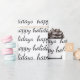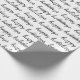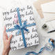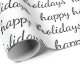 Este papel de embrulho apresenta um padrão de 'Feriados Felizes' em preto sobre fundo branco.