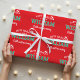 Prepare-se para o Natal com papel de embrulhamento de nome personalizado! Esta design festiva apresenta uma tipografia inspirada em camisa desportiva, com uma letra de bloco retrô, um chapéu de Papai Noel e estrelas. Personalize a modelo com o nome do destinatário, o ano, e você pode personalizar a frase 'Chill and be feliz' com sua própria mensagem de feriado. Este design simples e na moda é perfeito para crianças, adolescentes, família e amigos! Um pacote de presentes de padrão uniforme, disponível com um acabamento brilhante ou fosco. Cores impressas: vermelho, verde e branco.