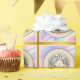 Papel De Presente Felz pascoa com coelhinhos, ovos e flocos