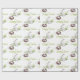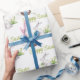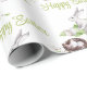 Este papel personalizado de empacotamento de presentes apresenta um tema de Páscoa elegante, estilo aquarela. Uma saudação de "Felz pascoa" é impressa em uma fonte elegante com um pequeno ninho de pássaros por cima. Um passarinho está descansando no ninho com os ovos. A imagem de um coelho branco na grama é apresentada abaixo. Coloca-se um par de tulipas brancas atrás do coelho, com dois ovos decorados de Páscoa sobre a grama à sua frente.