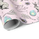 Este bonito Papel de Enrolamento de Bunnies Rosa-Rosa-Pastel para crianças apresenta ilustrações desenhadas à mão em tinta preta de coelhos, folhas e flores contra um fundo cor-de-rosa-macio. Personalize com o nome da criança.
