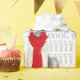 Doce ilustração aquática de um cão Labradoodle amarelo giro num chapéu de cima e o cachecol vermelho senta-se com um divertido fundo de arte vocal 'woof'.
