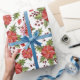 Papel De Presente Feriado Clássico de Natal de Poinsettia
