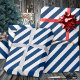 Um papel de embrulho de feriado branco e azul-marinho, com faixas largas na diagonal do marinho.