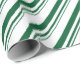 Um papel de embrulho verde-florestal e doce branco que inclui listras escuras de canas verdes da floresta na diagonal em um padrão repetido.