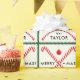 Embalagem de presente de Natal de hóquei em campo com bastões de hóquei como canas doces. Edite texto para personalizar facilmente seu jogador de hóquei, treinador ou fã de esportes de equipe favoritos.