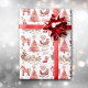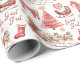 Este divertido papel de embrulho de Natal estilo escandinavo tem imagens de dias passados. Principalmente em vermelho e branco, as imagens incluem um trenó puxado por cachorros, uma trenó, uma árvore de Natal, um cavalo decorado, um coração, flocos de neve e uma estocagem. O texto em vermelho diz "Deus Jul". É um prazer celebrar o Natal à moda antiga!