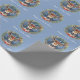 Feriado de inverno Wreath Berries O papel de embrulho de Natal com fundo azul. Feliz Solstício de inverno! Celebrar a mais longa e mágica noite do ano com este belo design de Natal de Natal de Yule. Este belo design de aquarela moderno apresenta uma coroa verde, cervo com galhos, estrelas douradas e lua azul crescente, galhos, velas vermelhas com chama brilhante e pontos metafísicos de cristal de ouro esotérico. Texto pronto para personalizar com sua própria citação de bênção.