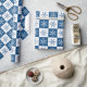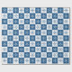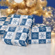 Flocos de neve brancos e azuis alternam em quadrados azuis-escuros e brancos marcados para criar um padrão geométrico na moda perfeito para o feriado de Natal.
