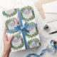 Este belo papel de embrulho de feriado apresenta elegantes flores vermelhas aquáticas com bagas ocas, pinecones e verde organizados como uma coroa chica e uma foto para personalização. Localize itens correspondentes na Coleção de Natal Botânico de inverno Vermelho Feriado.