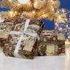 Este é um tema de natais vintages altamente detalhado. O design está muito ocupado e apresenta uma densa e repetida colagem de elementos tradicionais de feriado, predominantemente em cores vermelha, dourada, prata e creme. Os principais componentes incluem: recortes e cartões postais ao estilo vitoriano: há imagens repetidas de Papai Noel, anjos (muitas vezes em túnica branca), cenas de aldeia de inverno com neve e trechos de texto como "desejo de Natal" e "25" (provavelmente para 25 de dezembro). Ornamentos e Decorações: O fundo é repleto de texturas de garras vermelhas e douradas, de fita-cola ou dourada, e de vários Enfeites de natal brilhantes (esféricos, em forma de lágrima) em vermelho, ouro e prata. A estética geral é nostálgica e parece um impressão para empacotar papel ou tecido.