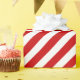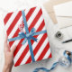 Um clássico papel de embrulho de férias listrado, vermelho e branco, com faixas largas vermelhas sobre fundo branco. Disponível em rolos de 30 polegadas de comprimento entre 6 e 15 pés.