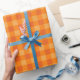 Papel De Presente Feriado de Xadrez de Buffalo Laranja