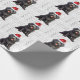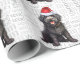 Este adorável cão Barbet está vestido para a temporada de férias em um chapéu vermelho de Papai Noel, sentado sobre um fundo macio de arte vocal.