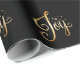 Papel De Presente Feriado Elegante de Script Dourado Preto "Joy"