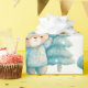 Esfregando papel com uma ilustração adorável. Um urso aconchegante com estrelas e faíscas no pelo. Ao lado de uma árvore de Natal. Cor azul-esverdeada do Pastel. Whimsical e fofo.