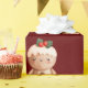 Um doce biscoito de gengibre com arco sagrado no cabelo de gengibre. Fundo vermelho. Feito em aquarelas. Perfeito para qualquer idade para o seu embrulho de presente.